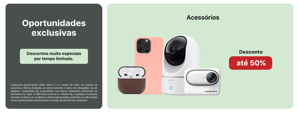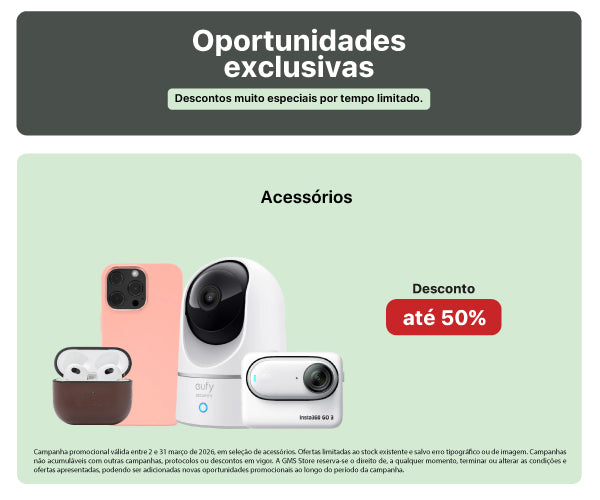 Salvo indicação em contrário, os descontos e campanhas apresentados são válidos para o dia 03-07-2025, salvo erro tipográfico ou de imagem e até ruptura de stock. Todos os valores incluem IVA à taxa legal em vigor e podem ser alterados sem aviso prévio. As imagens podem não corresponder ao produto descrito. A GMS Store declina qualquer responsabilidade sobre eventuais erros nas descrições e/ou referências dos produtos. Recomendamos sempre a confirmação das imagens e características no site do fabricante. Por questões técnicas, as cores apresentadas podem diferir ligeiramente das cores reais.